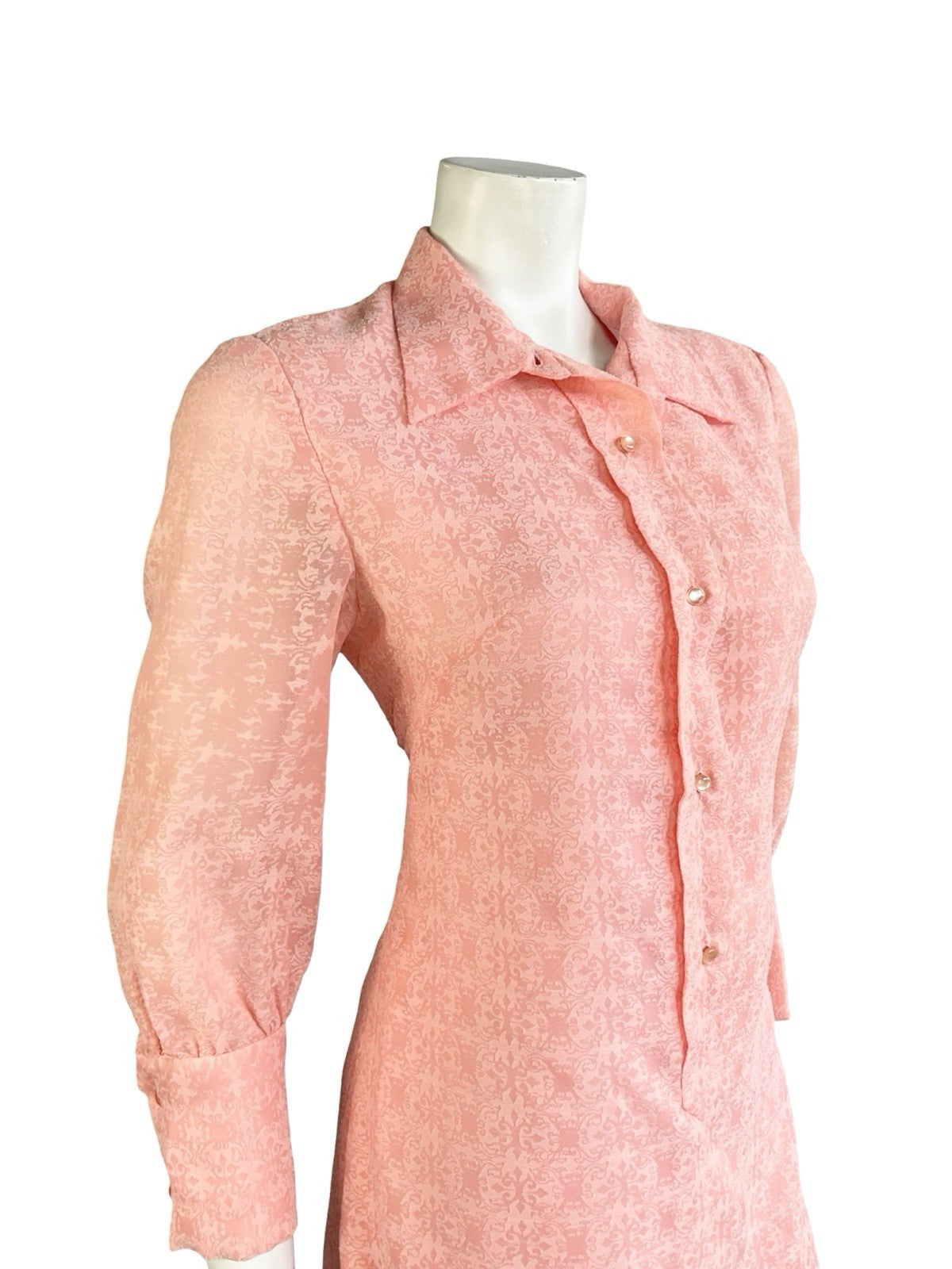 VTG 60S MOD GOGO CORAL PINK BAROQUE 3/4 SLEEVE ROMANTIC SHIRT DRESS 10