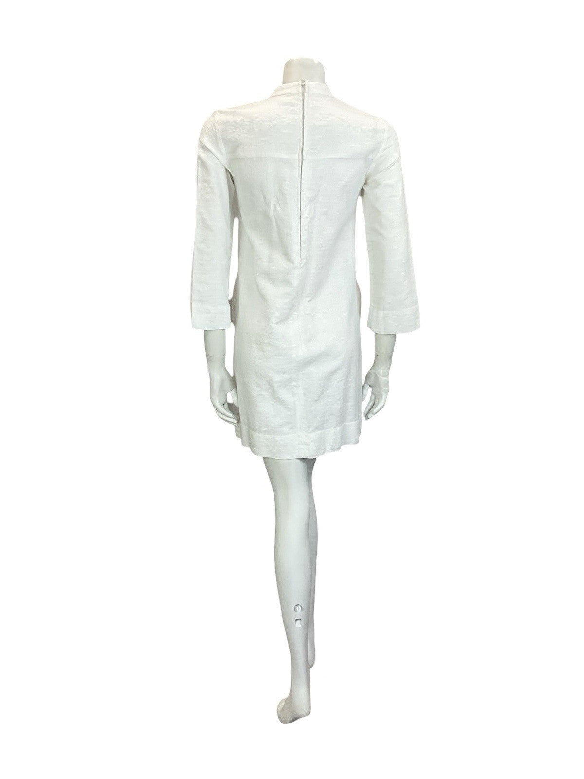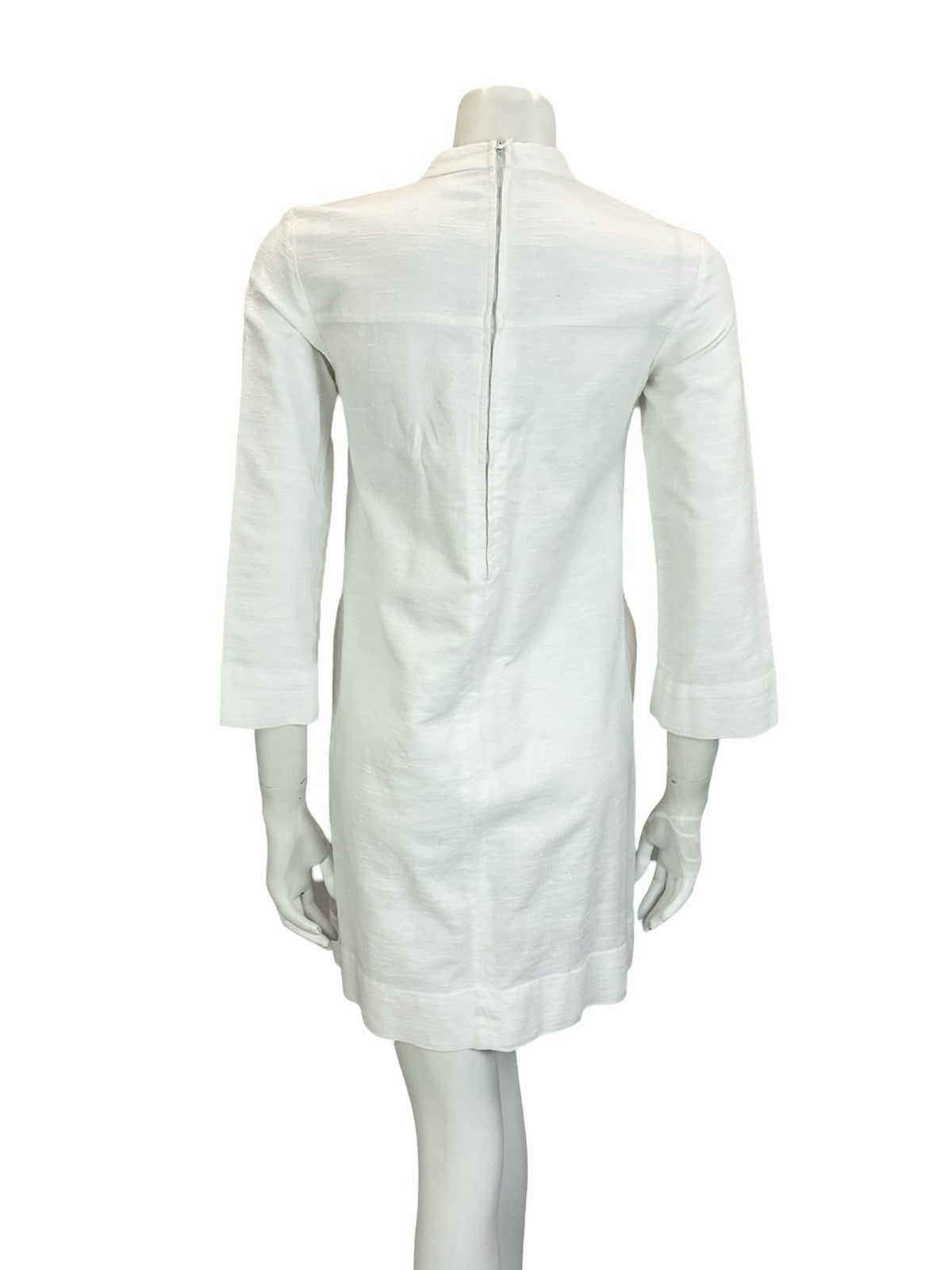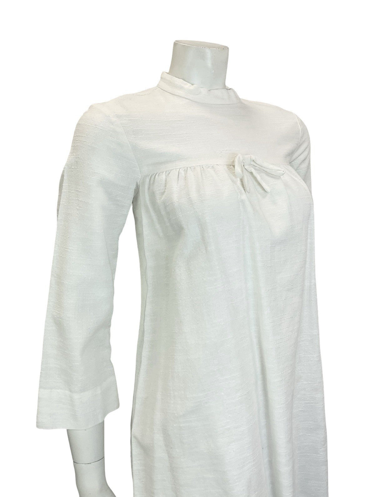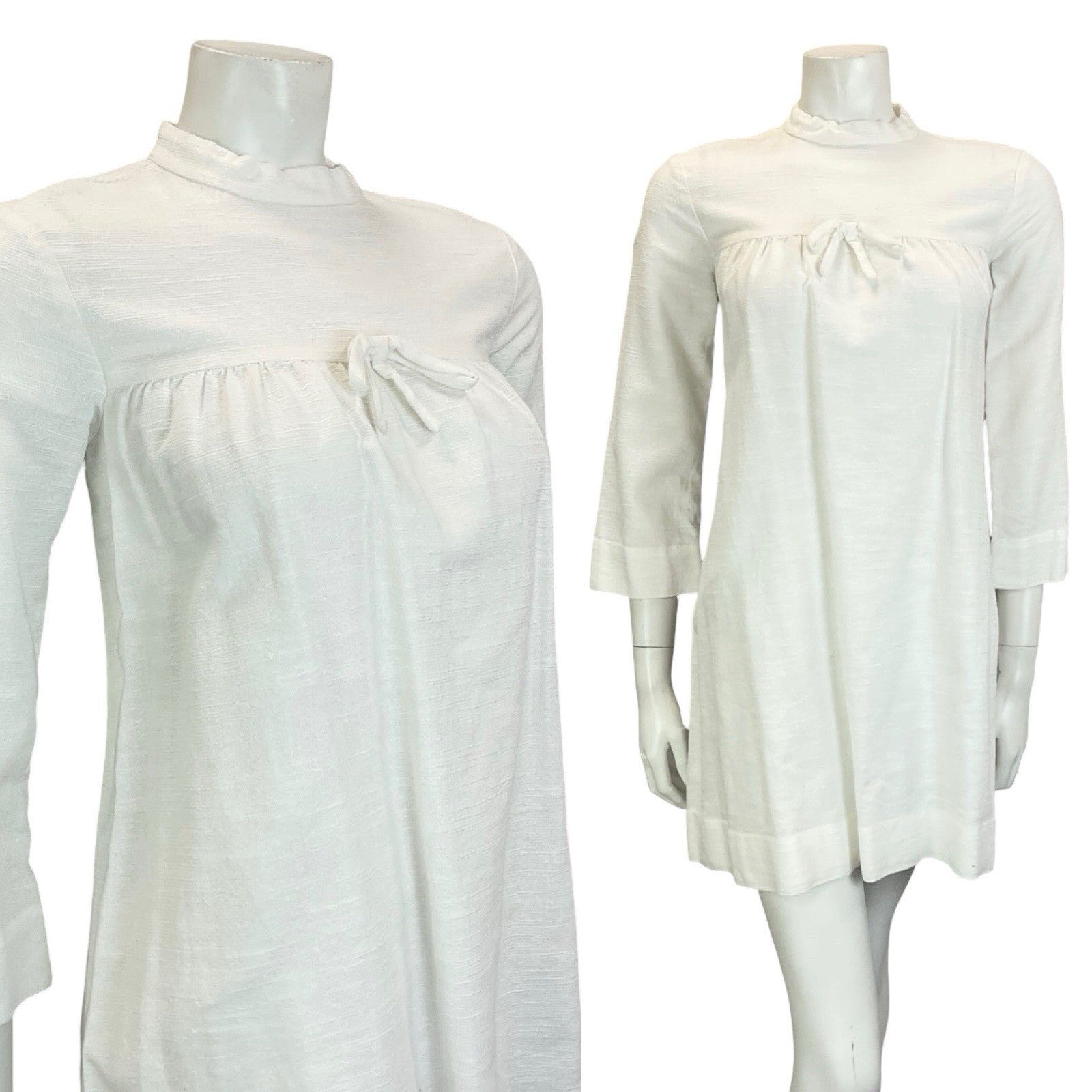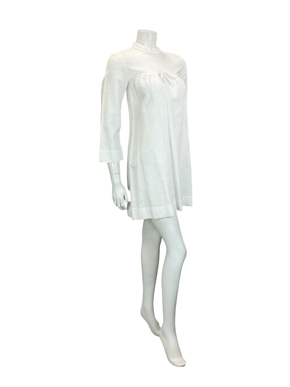VTG 60S MOD GOGO WHITE BRIDAL COTTON 3/4 SLEEVE BOW SMOCK TENT DRESS 8