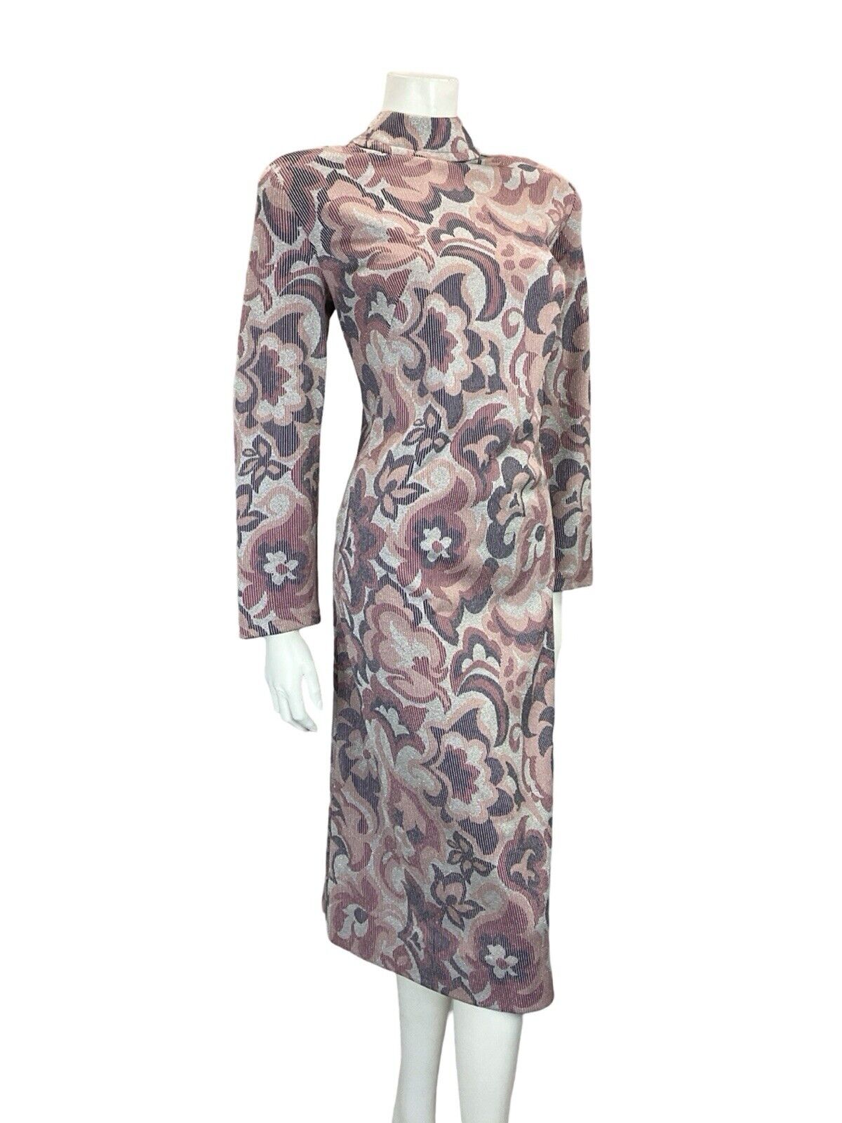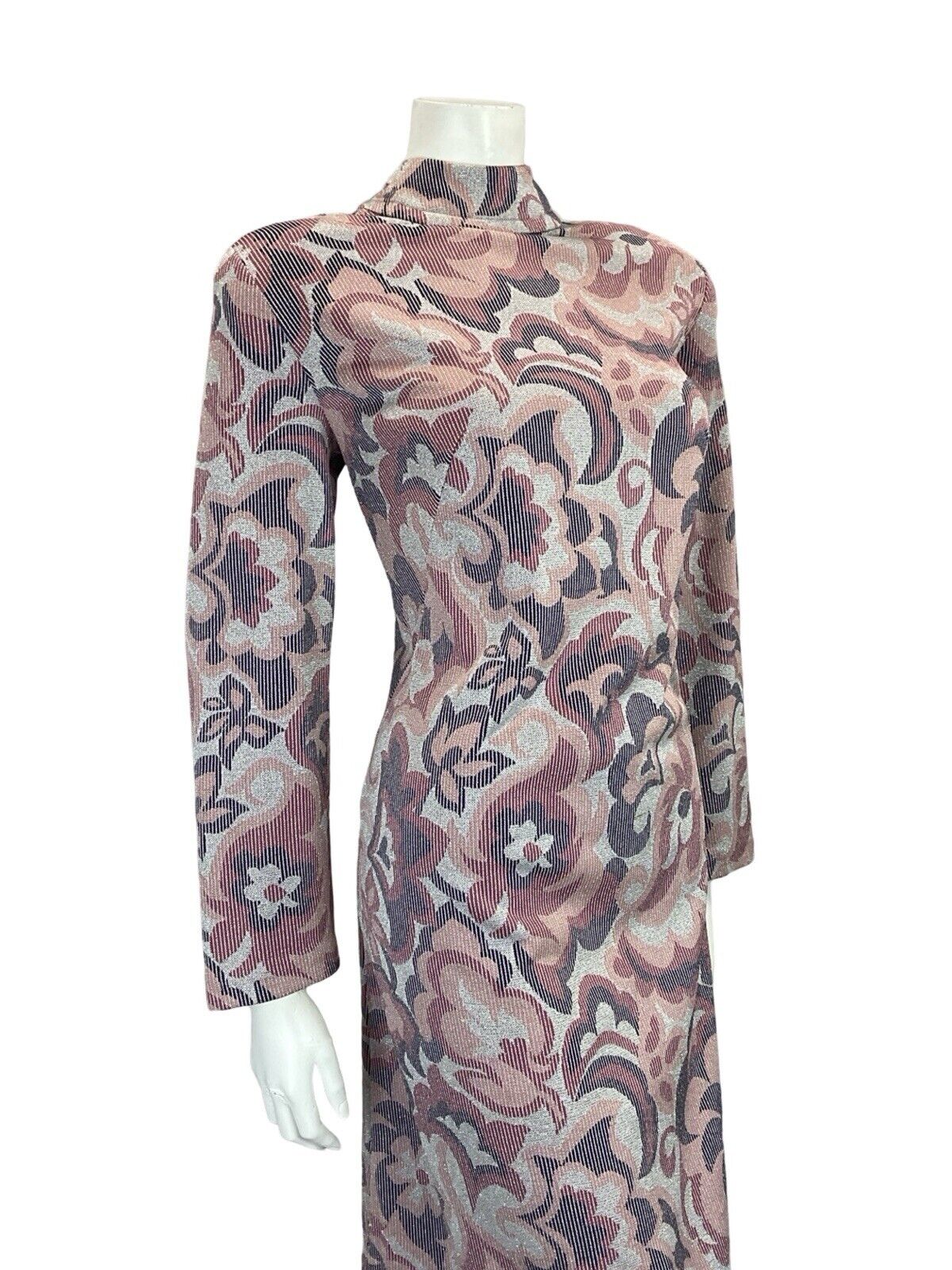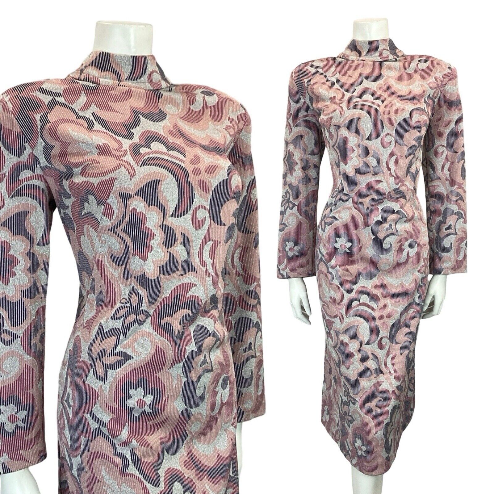 VTG 60S MOD PSYCHEDELIC SILVER PURPLE PINK SPARKLING FUNNEL NECK PARTY DRESS 16