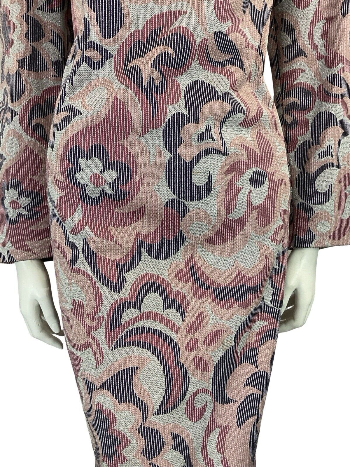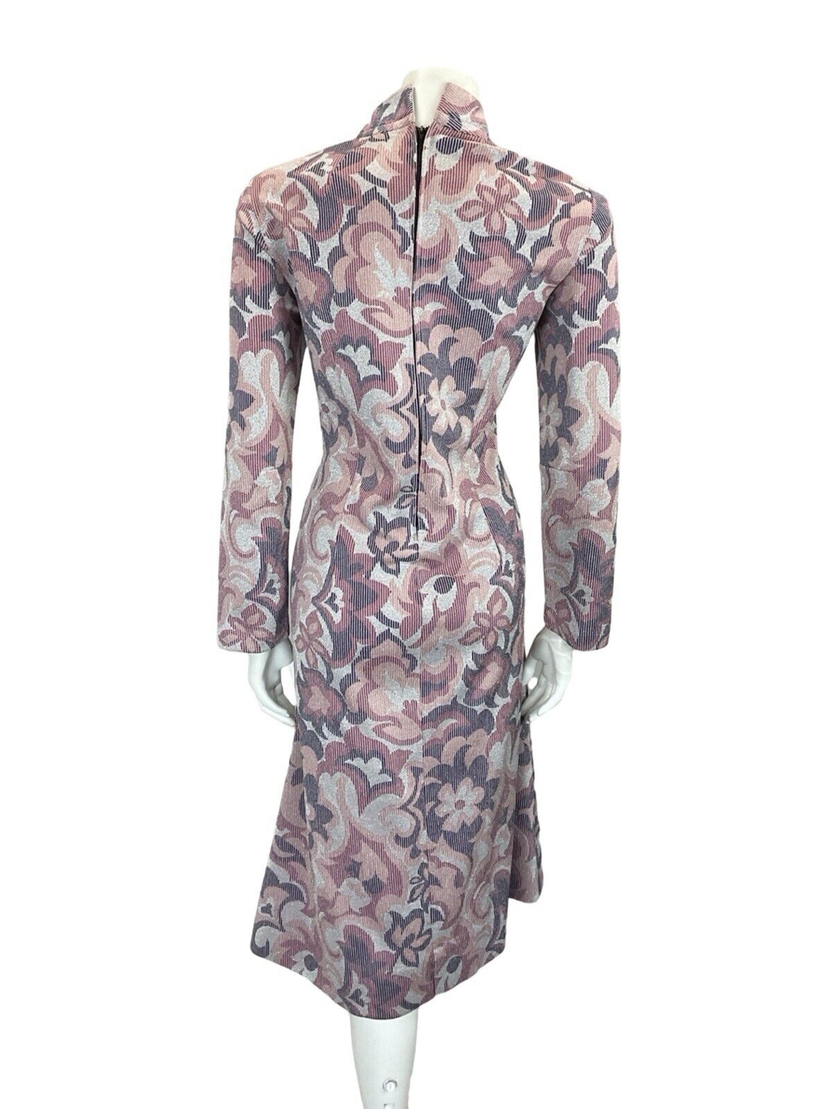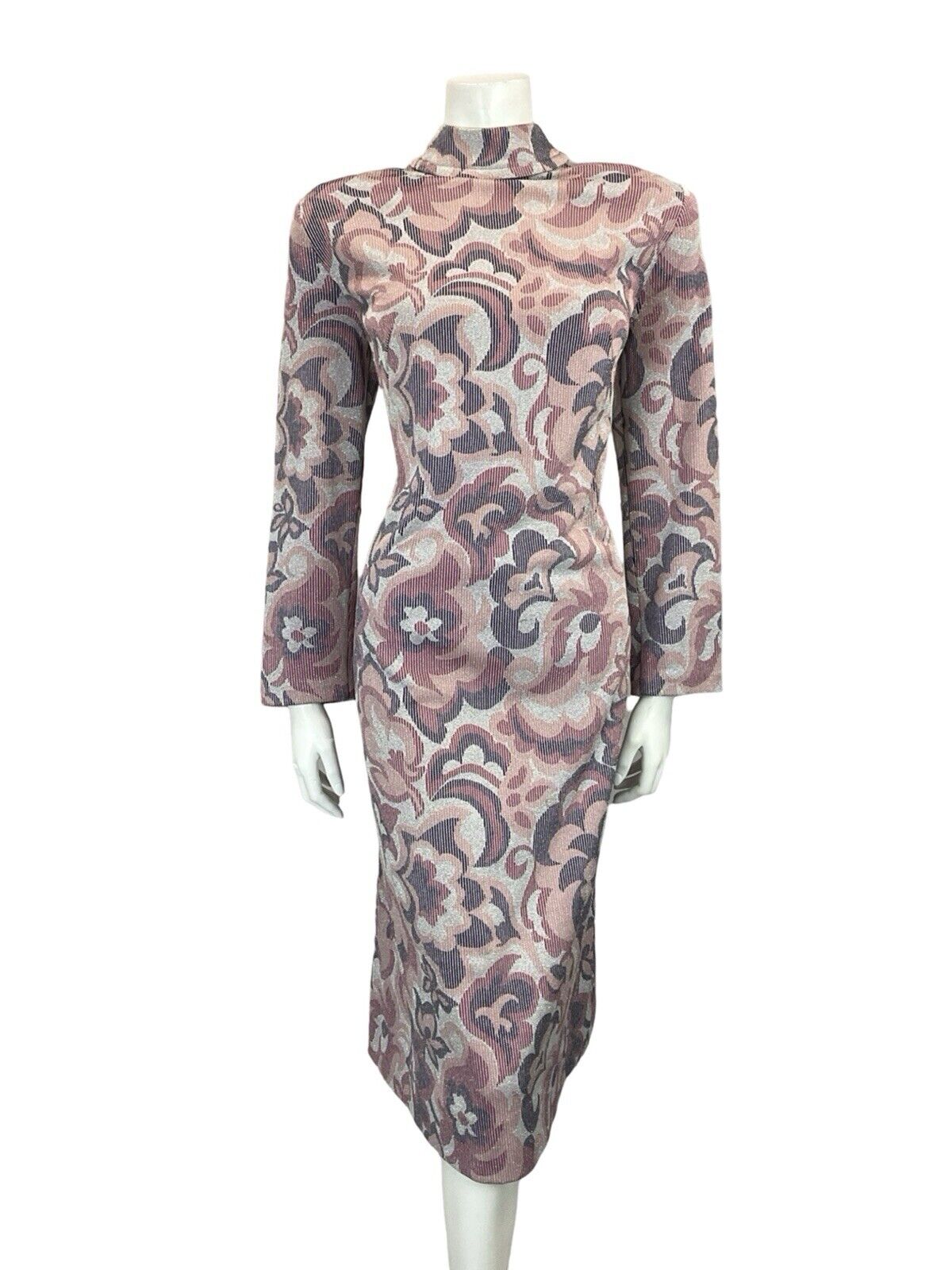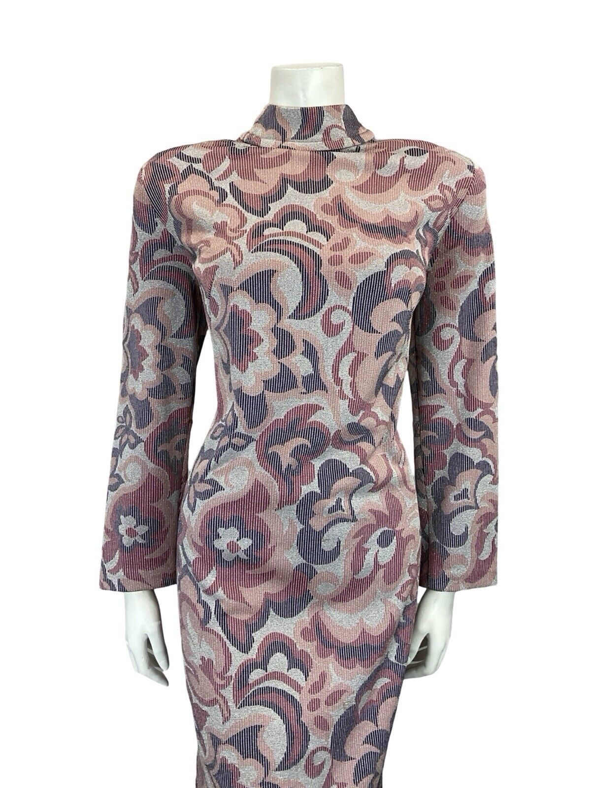 VTG 60S MOD PSYCHEDELIC SILVER PURPLE PINK SPARKLING FUNNEL NECK PARTY DRESS 16