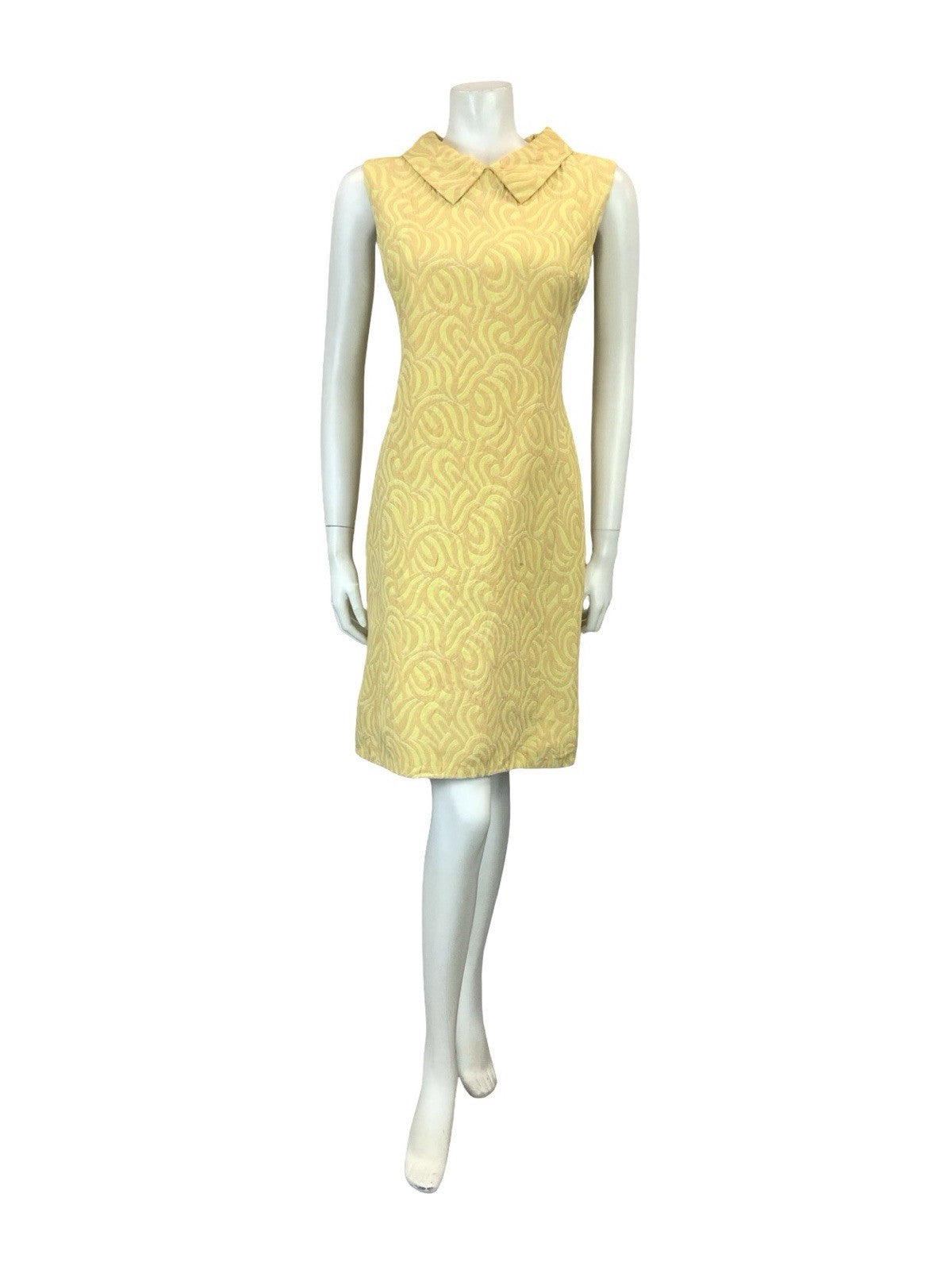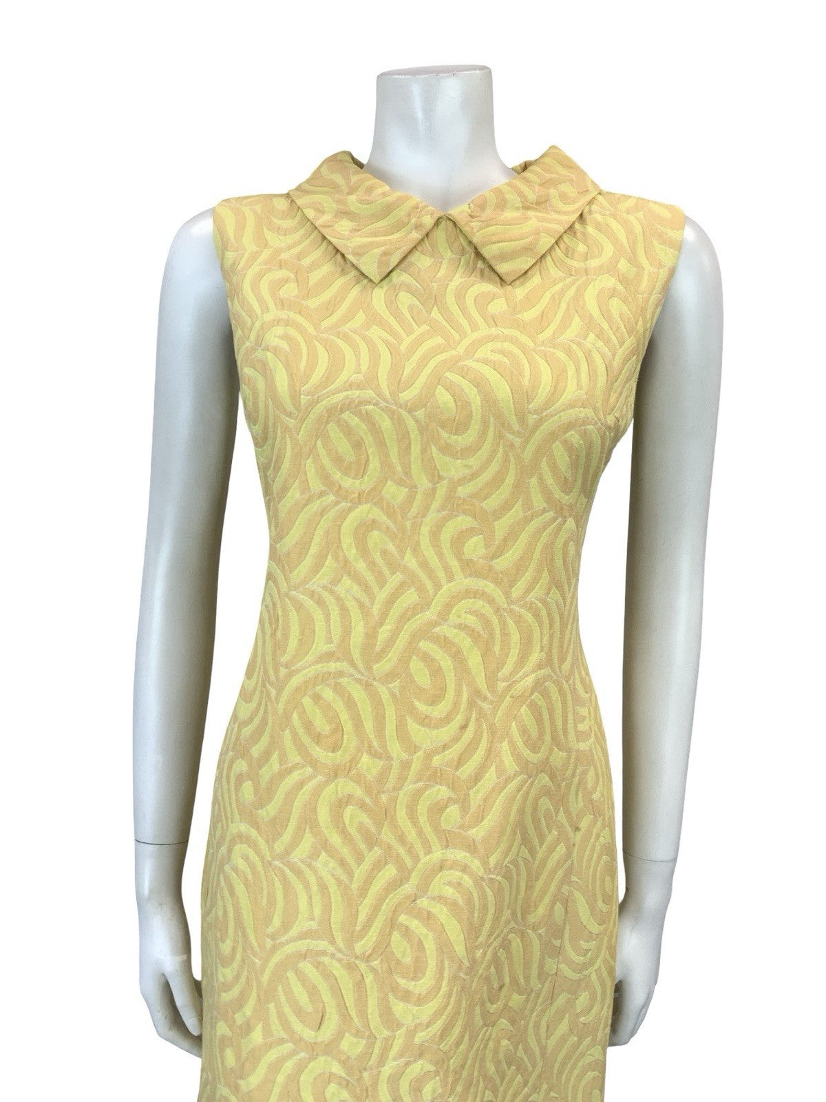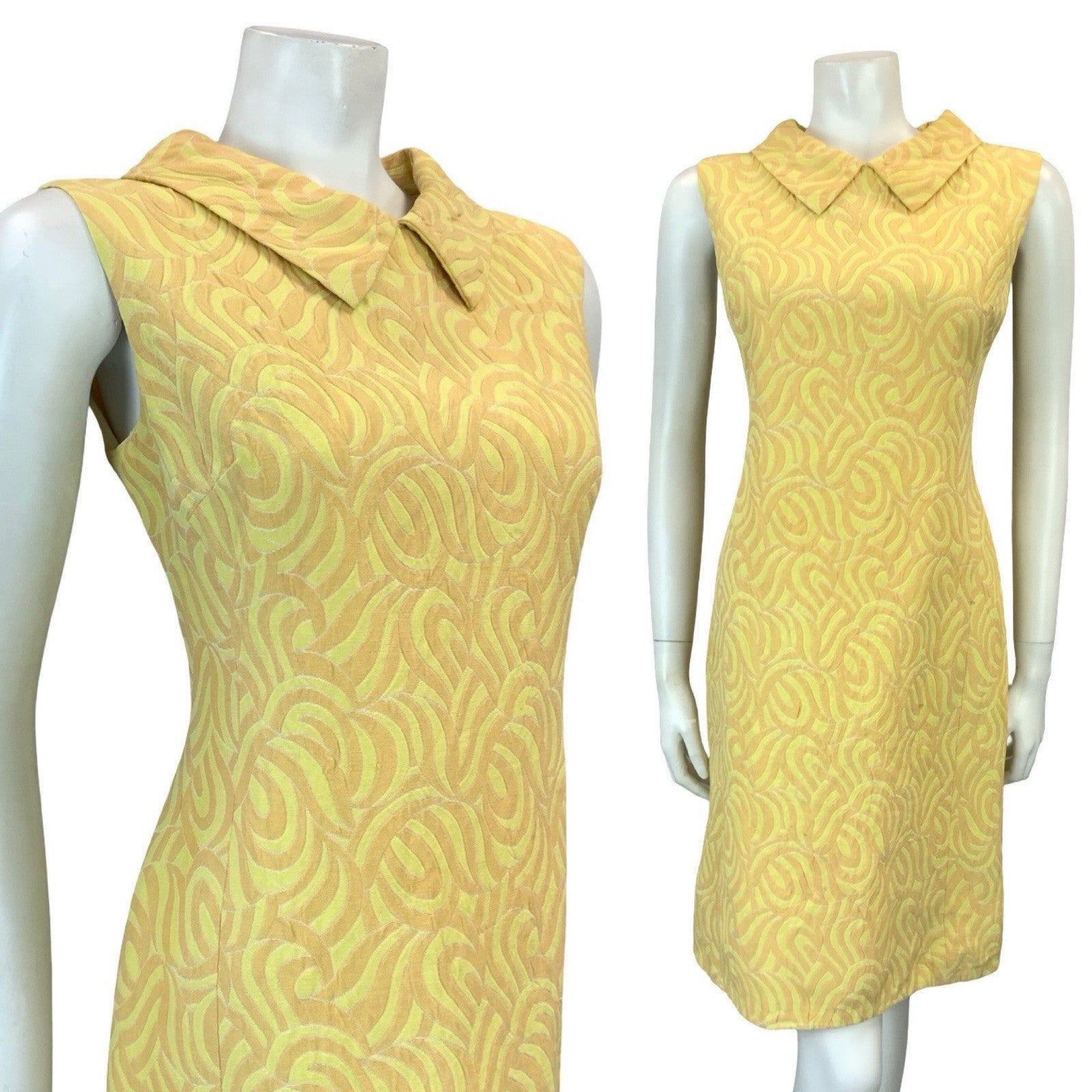 VTG 60S MOD YELLOW PEACH ORANGE PSYCHEDELIC EVENING SHIRT MIDI DRESS 10 12