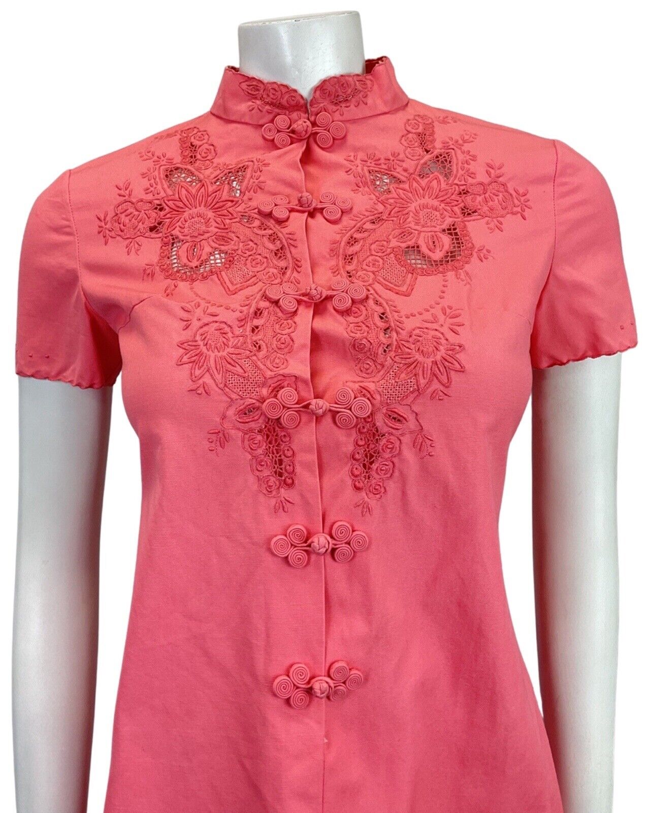 VTG 60s STYLE 90s CORAL PINK FLORAL EMBROIDERED CHEONGSAM QIPAO SHORT DRESS 8