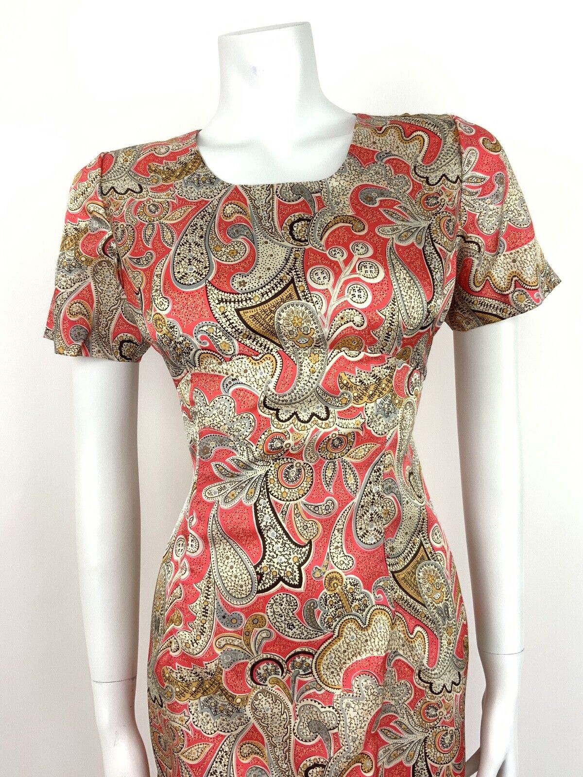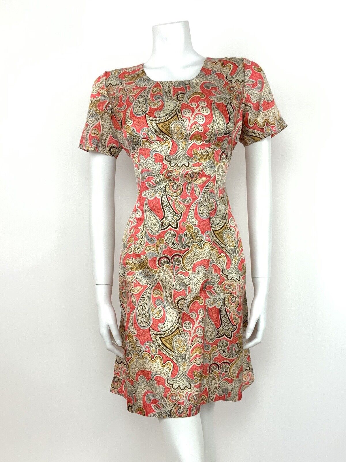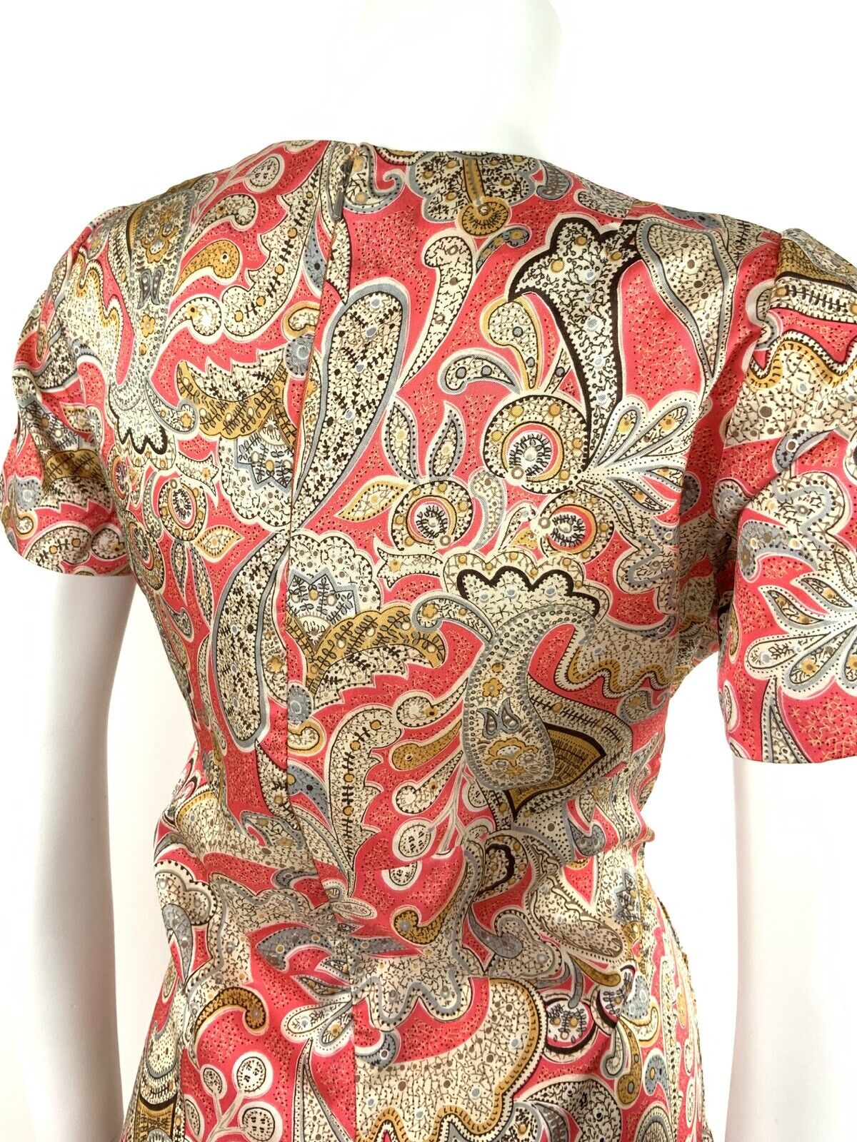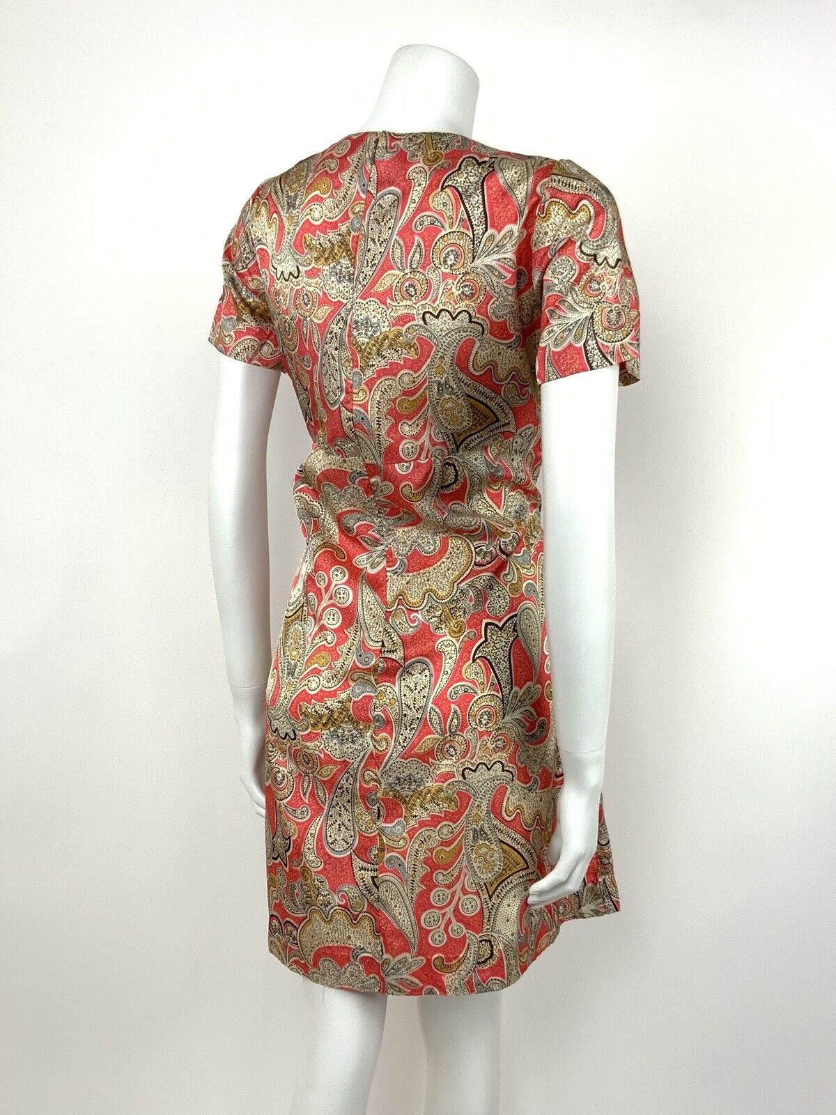 VTG 60s SUMMER DRESS PAISLEY FLORAL PINK SILVER CREAM GREY BROWN GOLD 12