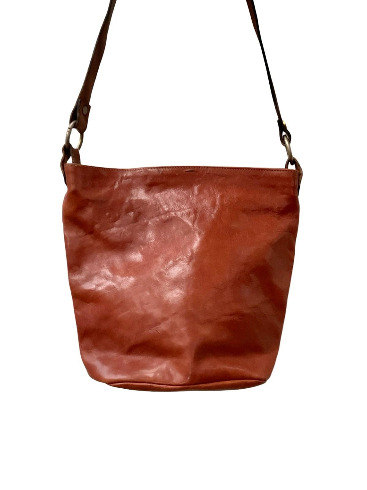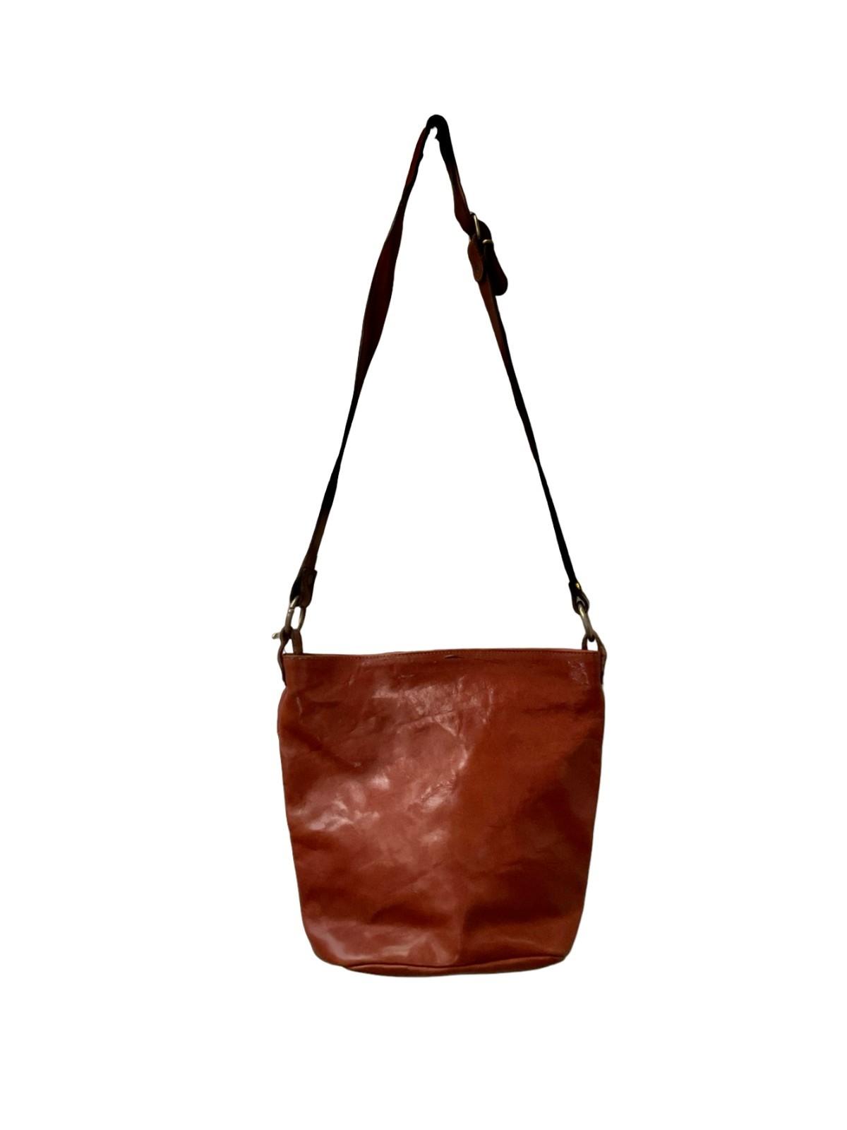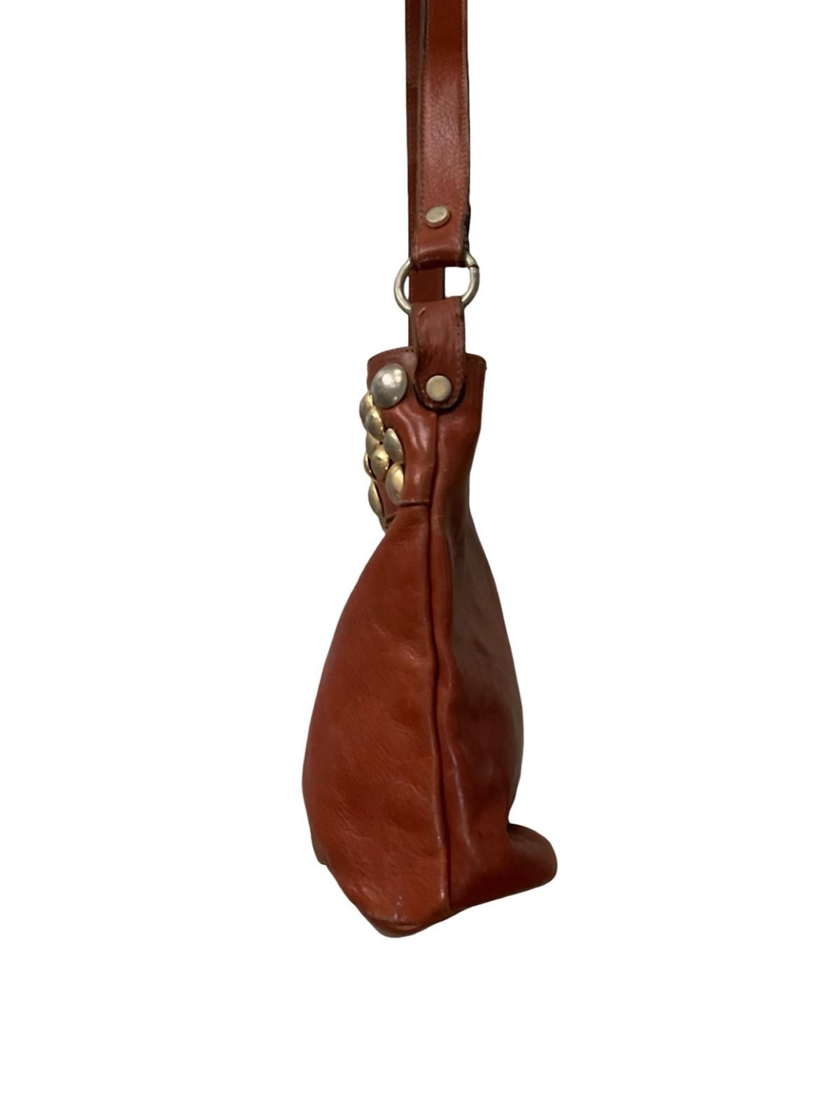 VTG 70S 80S BROWN LEATHER GOLD STUDDED GEOMETRIC MOD SHOULDER BAG