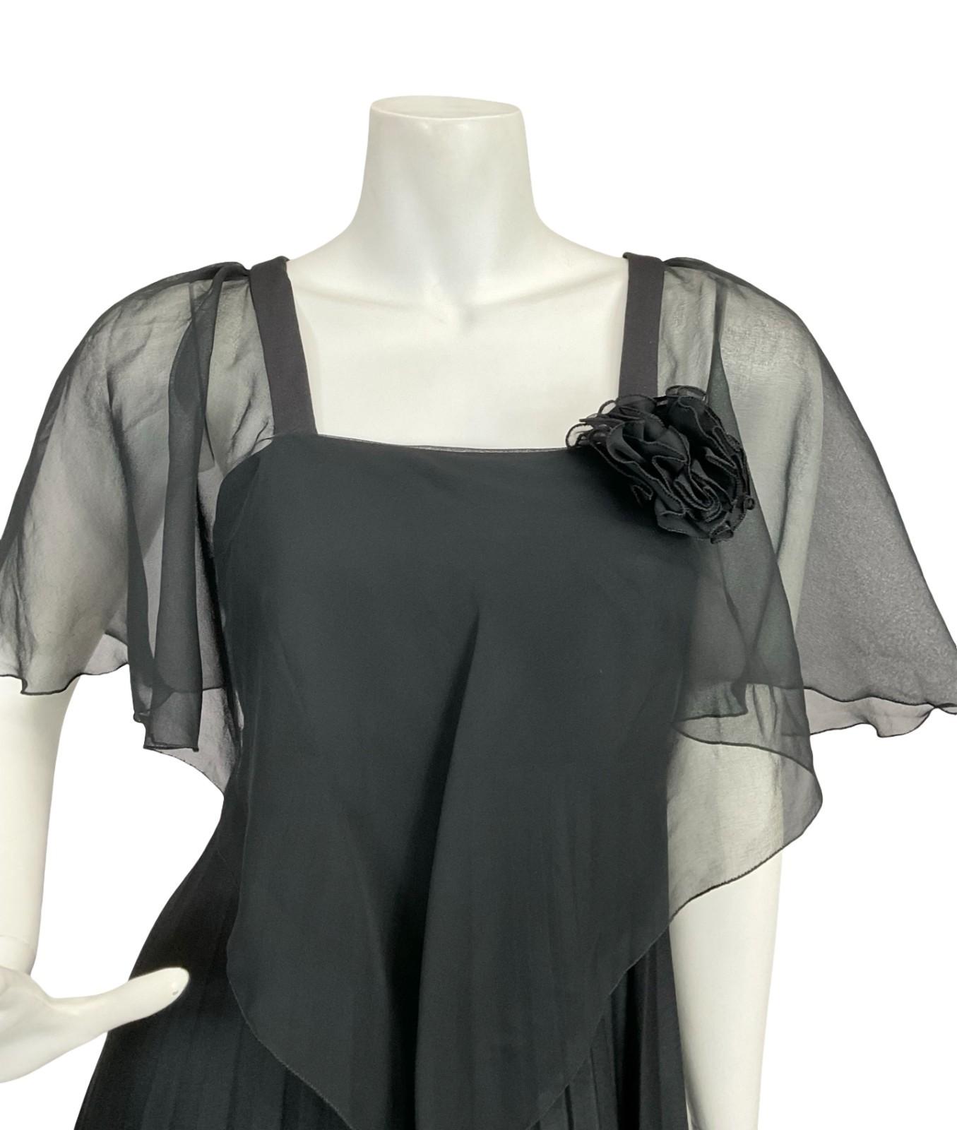 VTG 70S YESSICA BLACK PLEATED MESH CAPE STRAPPY EMPIRE MAXI DRESS 8