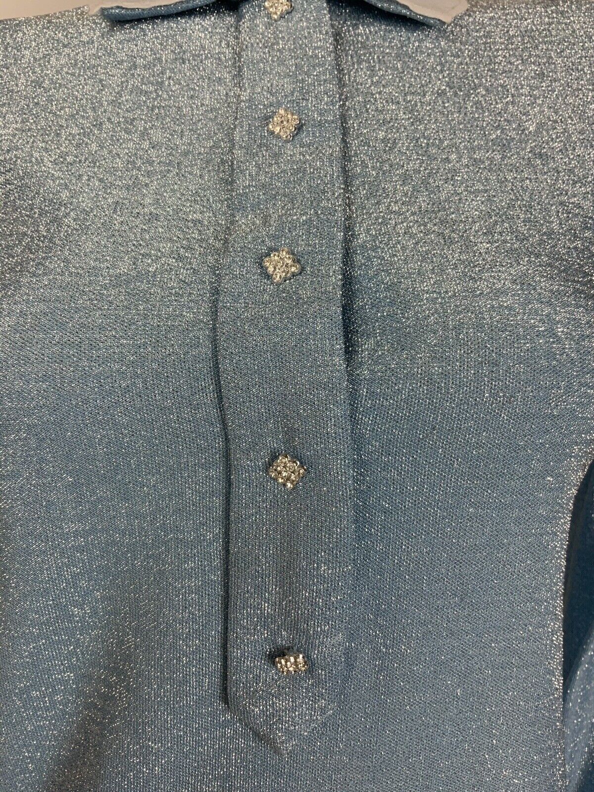 VTG MOD 60s 70s BABY BLUE SILVER LUREX BERMUDA COLLAR DIAMANTE SHIRT DRESS 10 12