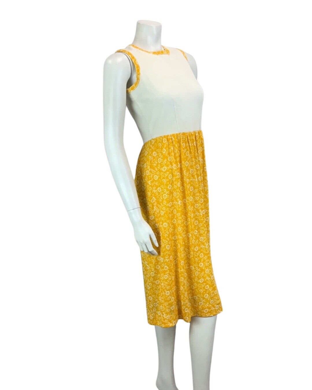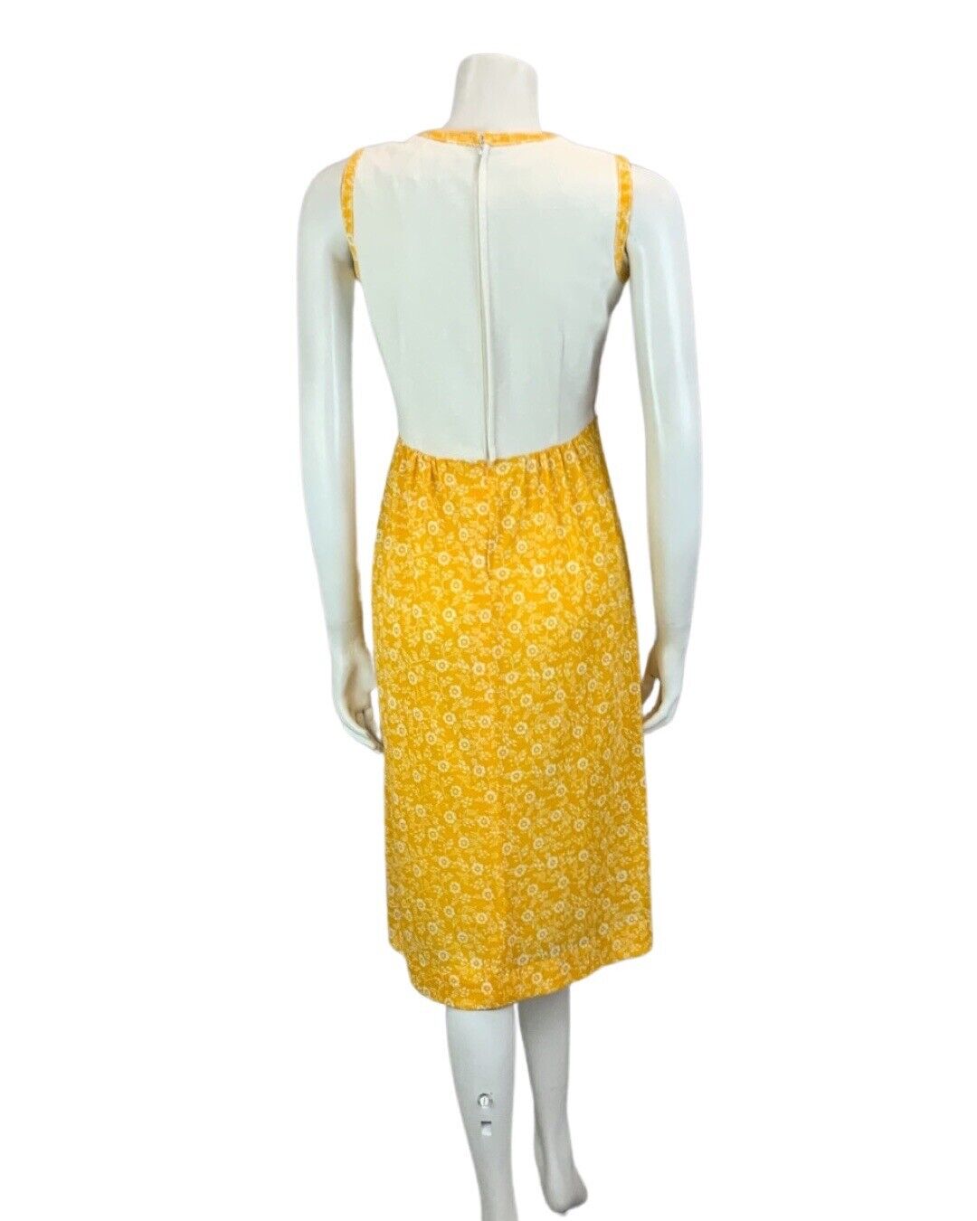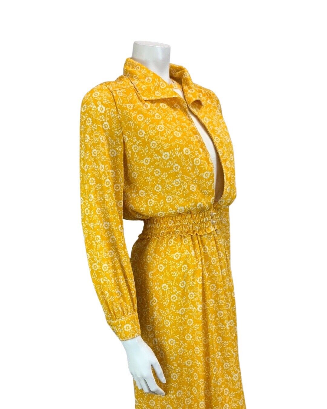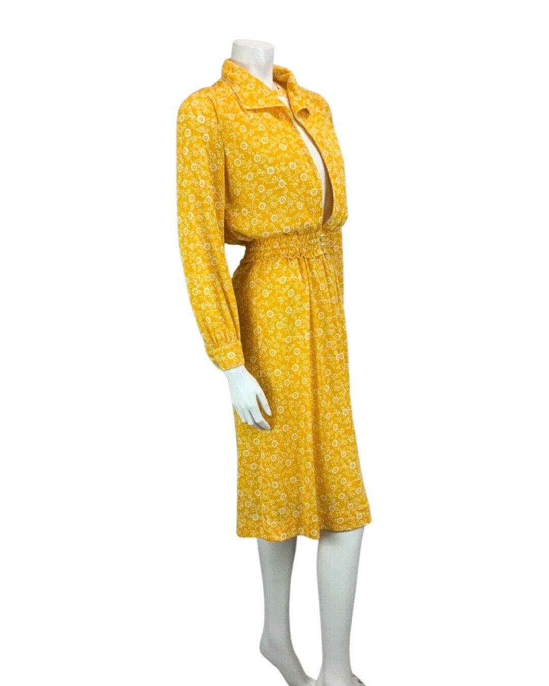 VTG MUSTARD YELLOW WHITE FLORAL PRINT TWO PIECE JACKET DRESS 60s 70s 10